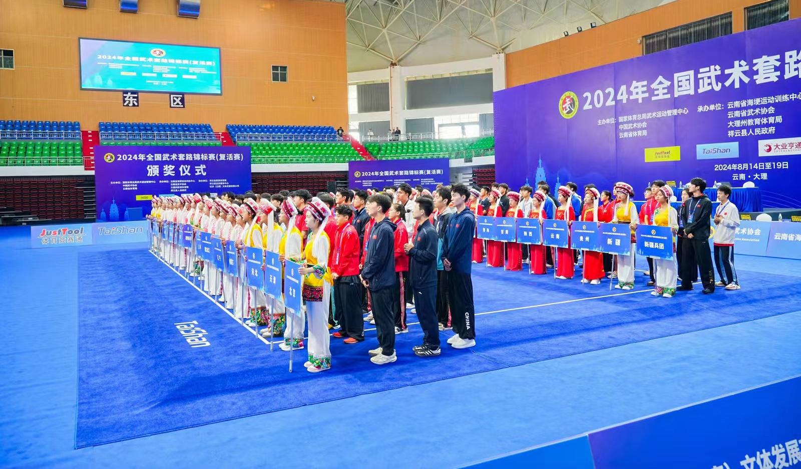 8月14日至19日,2024年全国武术套路锦标赛(复活赛)在云南省大理白族自治州祥云县全民健身中心举行,共有来自全国44支队伍的353名运动员参赛,为当地群众上演了一场精彩绝伦的武术盛宴。
